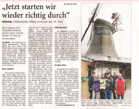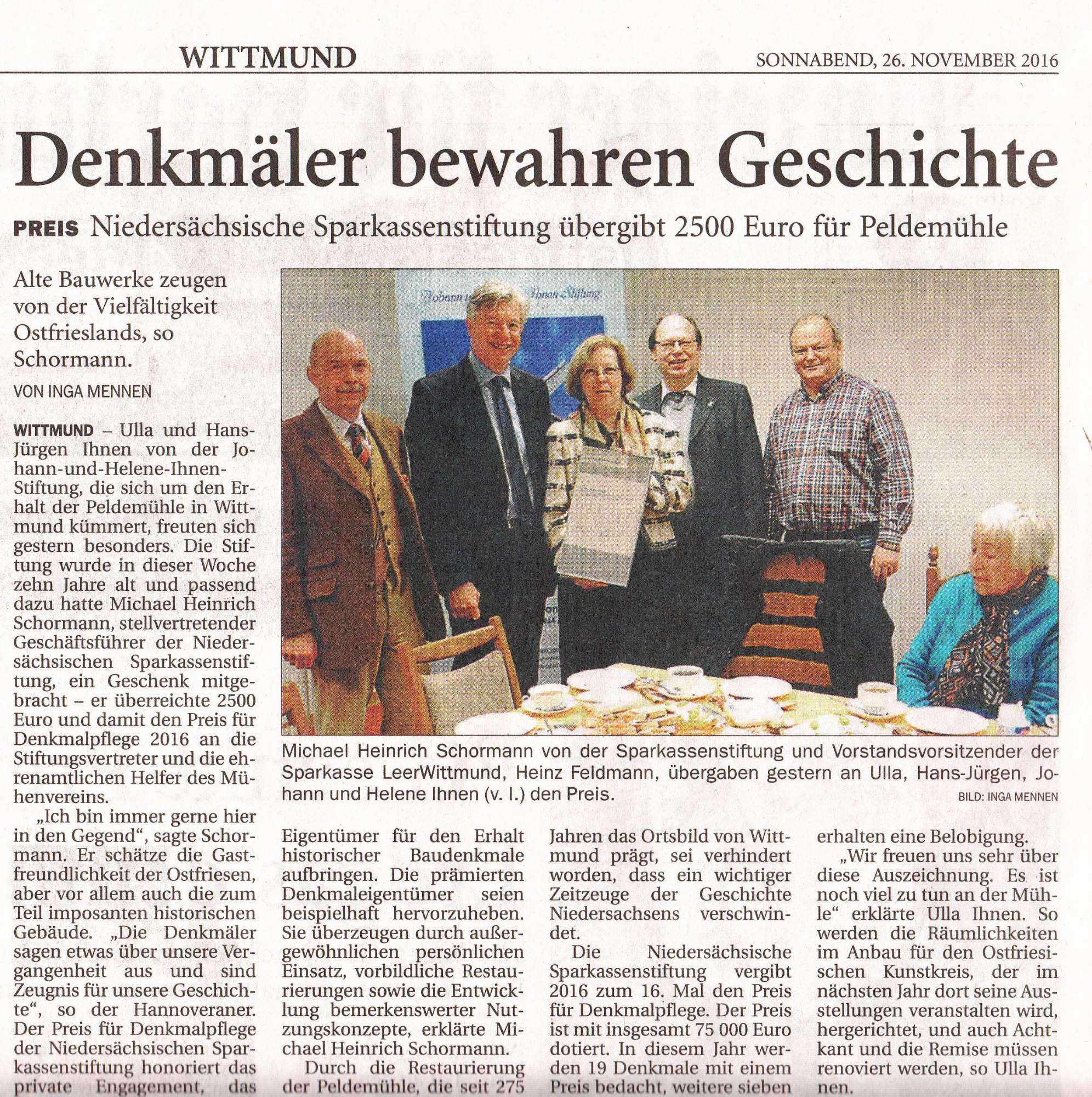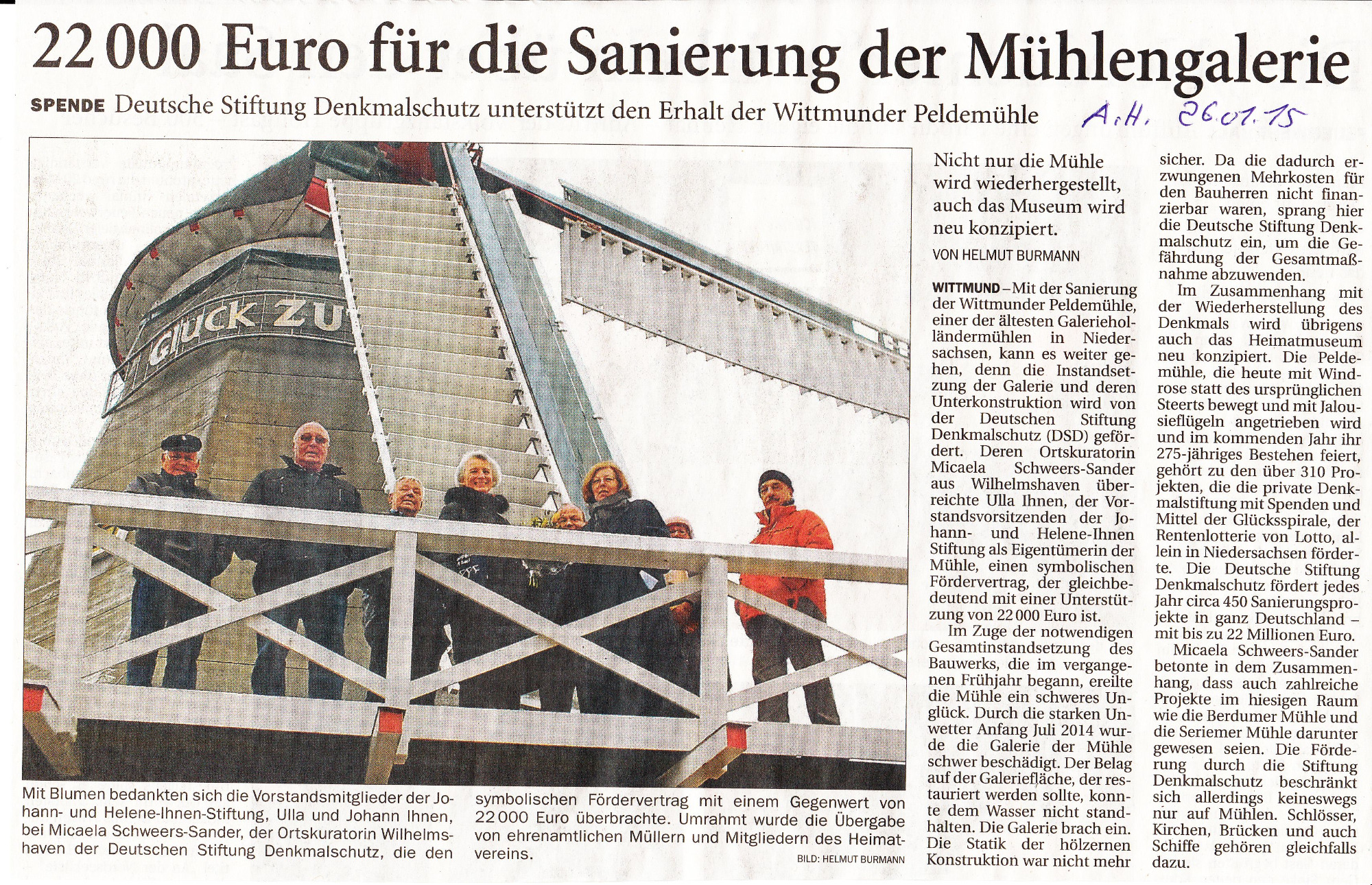 Übergabe an den Förderverein Peldemühle Wittmund e.V.