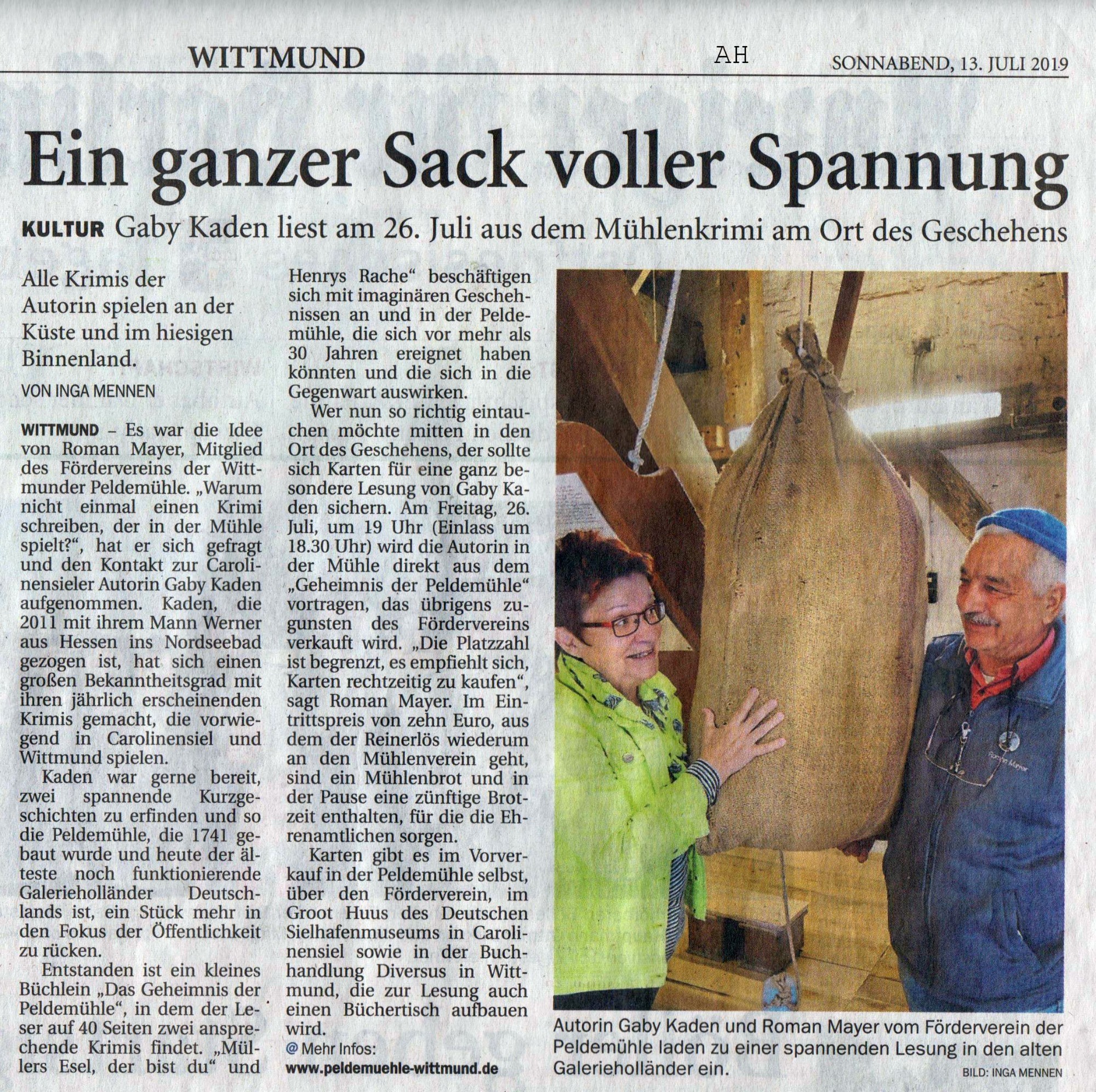 "Anzeiger für Harlingerland" Wittmund bzw. der "Ostfriesenzeitung"